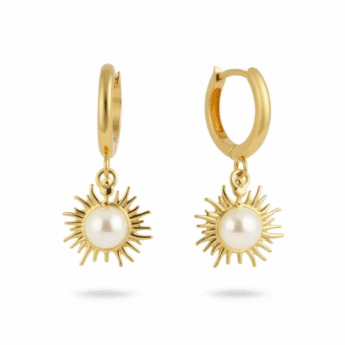 Cercei din argint placat cu aur, charm soare si perle – Double Sunshine
